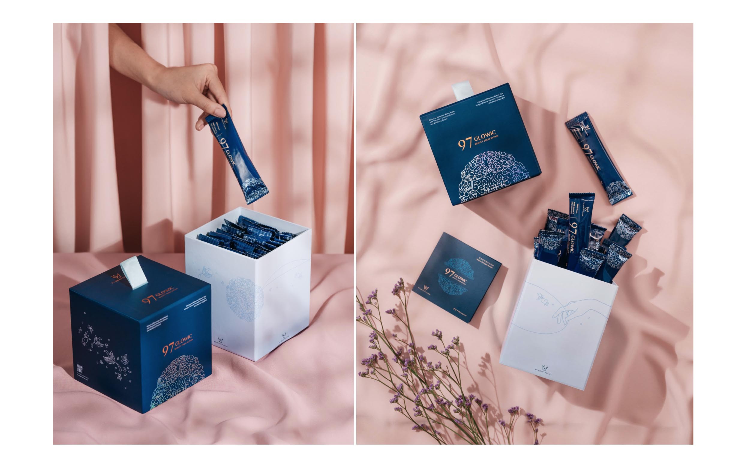 中药包装设计赏析——PY Beautyland中药通常给人的印象是药方繁复,与时下快捷方便的生活方式不同。新中医药品牌PY Beautyland成立,通过制作美味的即食中药,挑战对中药的传统观念。带着对新中医文化的共同愿景,我们与位于马来西亚的 PY Beautyland 合作推出了他们的第一个中医胶原蛋白和新陈代谢产品,97 Glowic 和 97 Supreme。